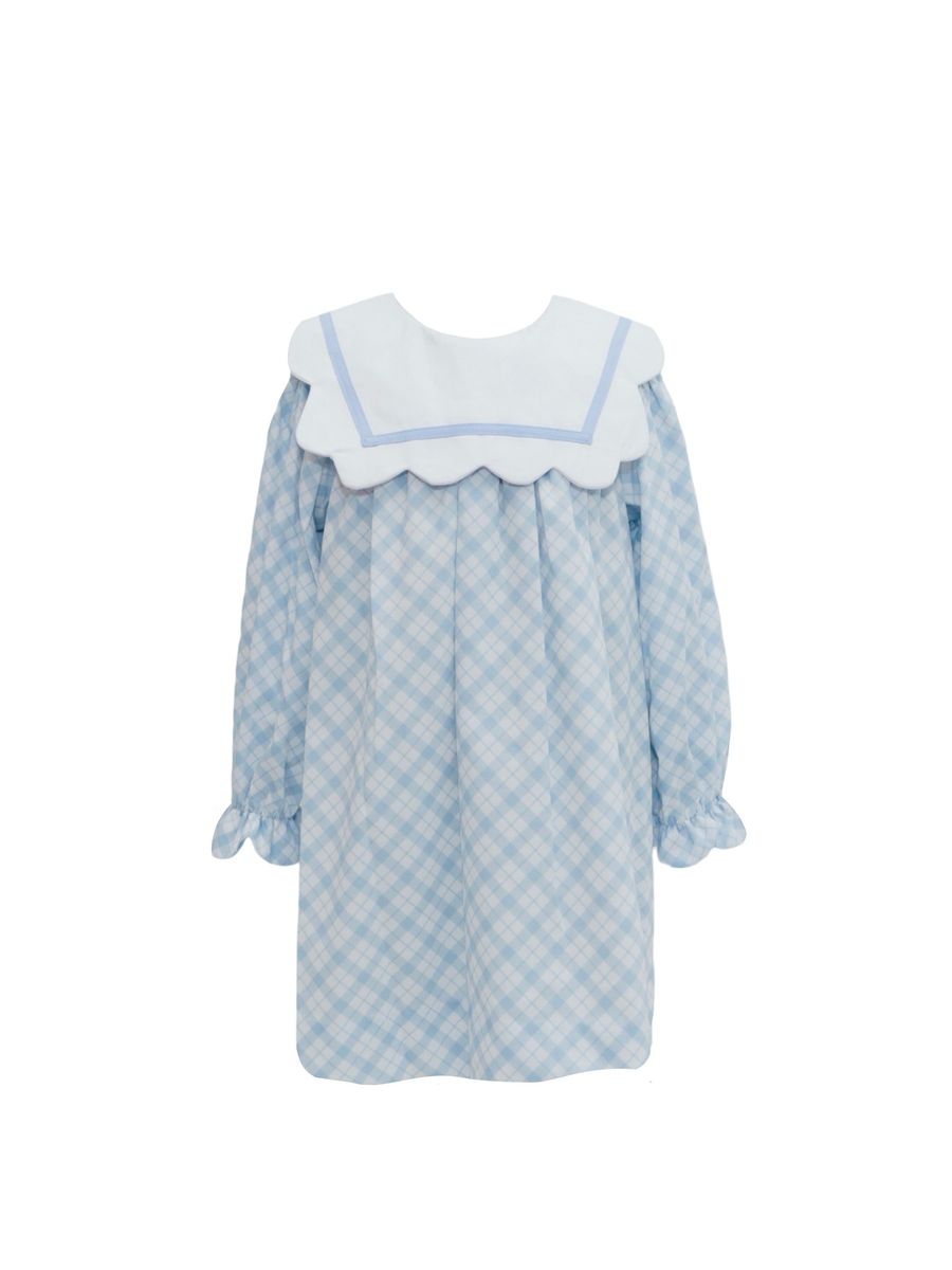 Blue Plaid Scallop Collar Dress