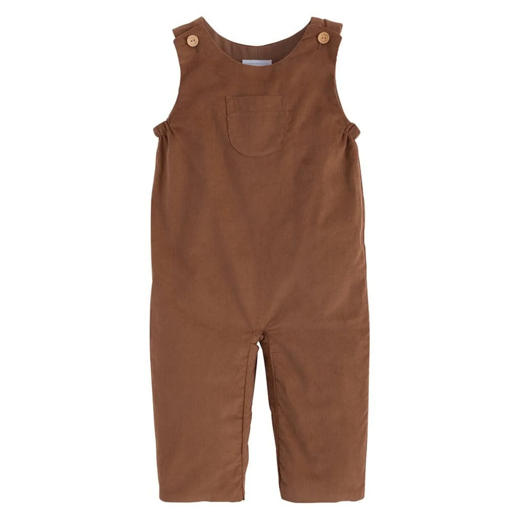 We adore this overall! Complete with a little pocket at the chest and sweet elastic under the arms, this Chestnut Corduroy overall will be a staple in your little boy's fall wardrobe! Looks precious with one of our Printed Turtlenecks or a Piped Peter Pan underneath!