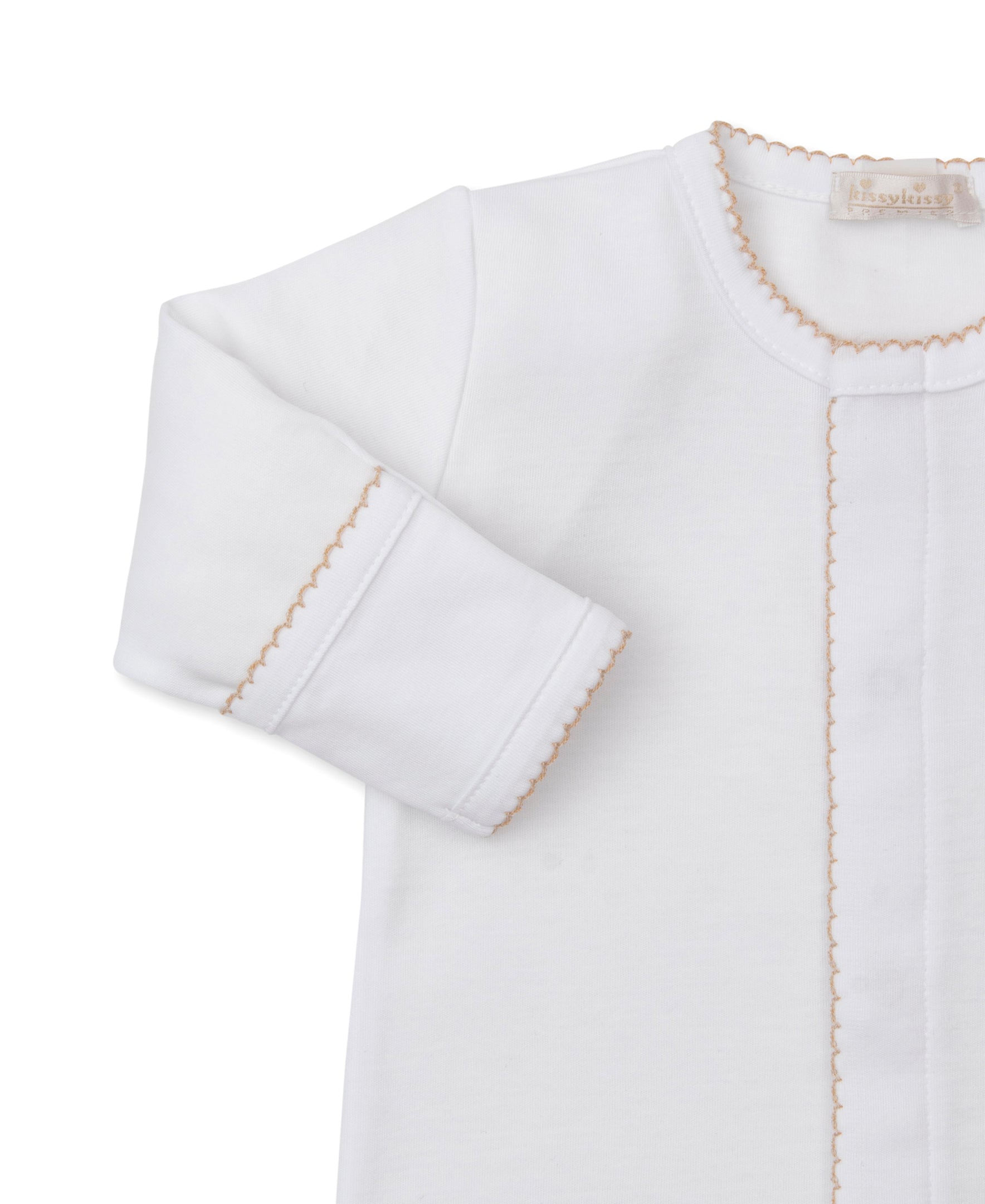 Teddy Bear Footie with Hand Embroidery White/Ecru